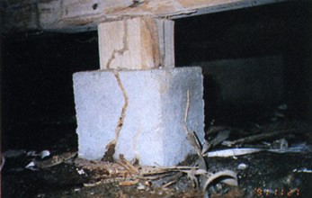 シロアリは地中から建物に侵入してくることが多いので、まず土台や床束、柱などの下部が食害されます。柱が浮いたり、傾いたりして地震や台風の際、思わぬ大被害をうけ、とても危険です。